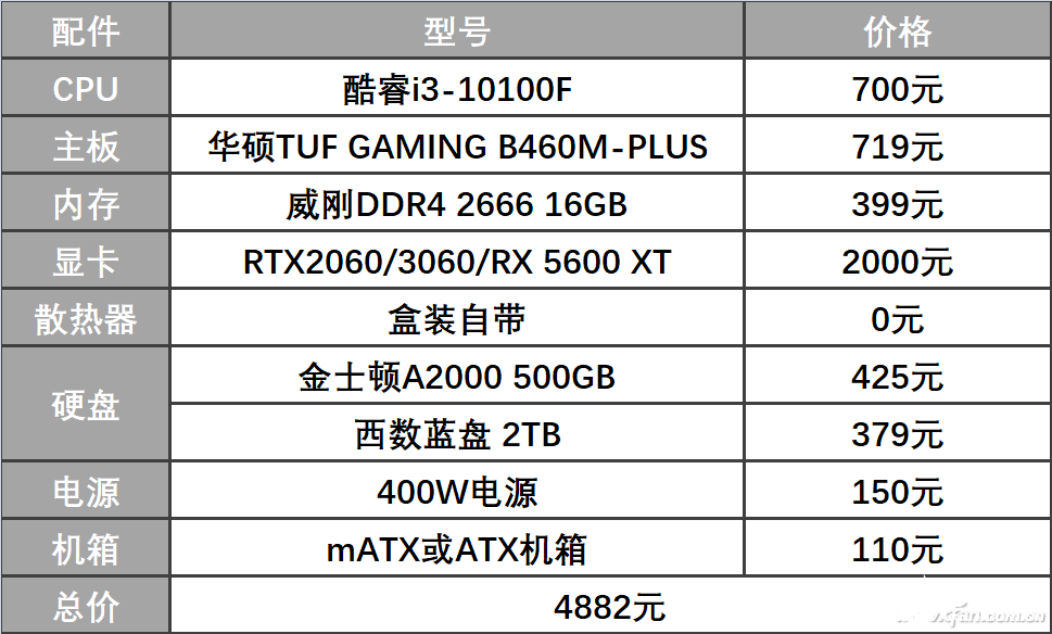 那么,i3-10100F上市后能带给我们什么样的平台呢?这里得说明一下,因为第十代酷睿的高端型号都有点拖RTX 3080的后腿,那入门级游戏CPU显然没必要搭这些高端显卡,小编的建议是如果到时RTX 2060/RX 5600 XT有甩货,那么趁低入手足够用了,如果上新卡的话,也不要超过RTX 3060这个级别的,这样5000元搞一台顺手的游戏主机完全没问题。