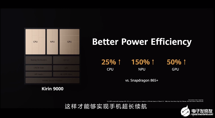 除了麒麟9000,海思还带来了麒麟990E 5G,我们可以将其视为麒麟990 5G的缩水版,少了2个GPU计算单元和1个NPU大核。