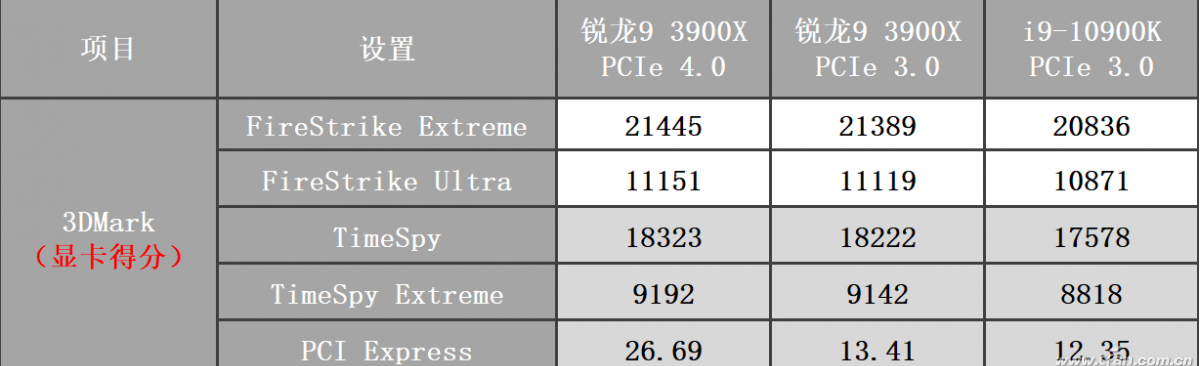 要想知道哪种搭配最合适,还是要从实际测试来看。为了不拖后腿,在测试中选择了Intel和AMD平台的最强的处理器锐龙9 3900X和i9-10900K,主板也是同一厂家的同一系列产品,分别使用X570和Z490这两个旗舰级芯片组。下面我们先来看一看3DMark理论性能测试吧。