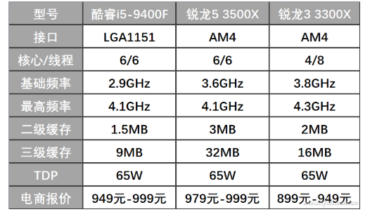 随着第九代酷睿的降价,千元级CPU市场中突然出现了一个很显眼的产品——酷睿i5-9400F,在949元~999元的价位上,AMD本来很强势的锐龙3 3300X和锐龙5 3500X这次要面对酷睿i5的挑战了。这几款价位接近,特别适合主流用户的CPU里,我们到底应该选哪个呢?咱们今天就来比比看吧。