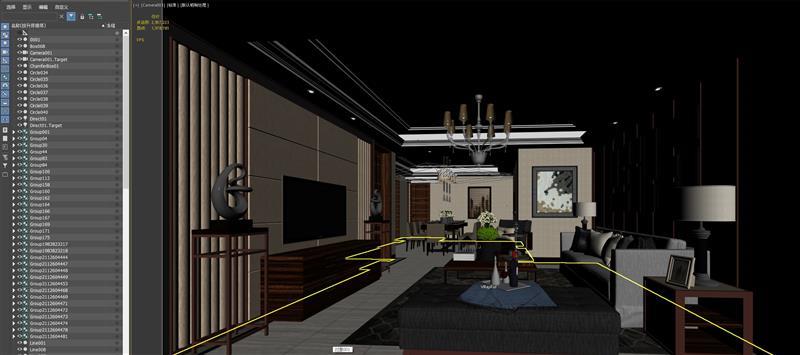 渲染的一处室内装潢的场景,多边形数量为290万,顶点数198万。