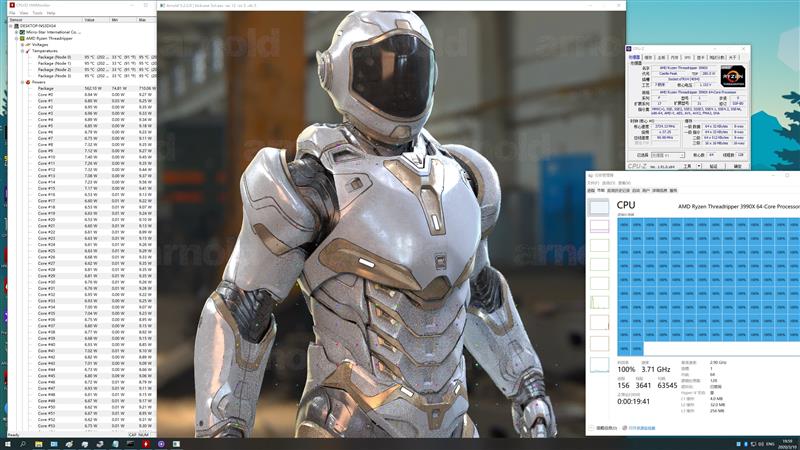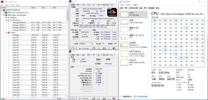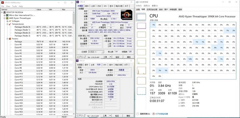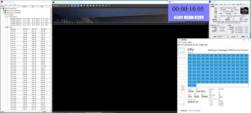 至于大家比较关心的全核心运行频率,根据我们快科技的测试数据,Threadripper 3990X可以达到64核3.95GHz。