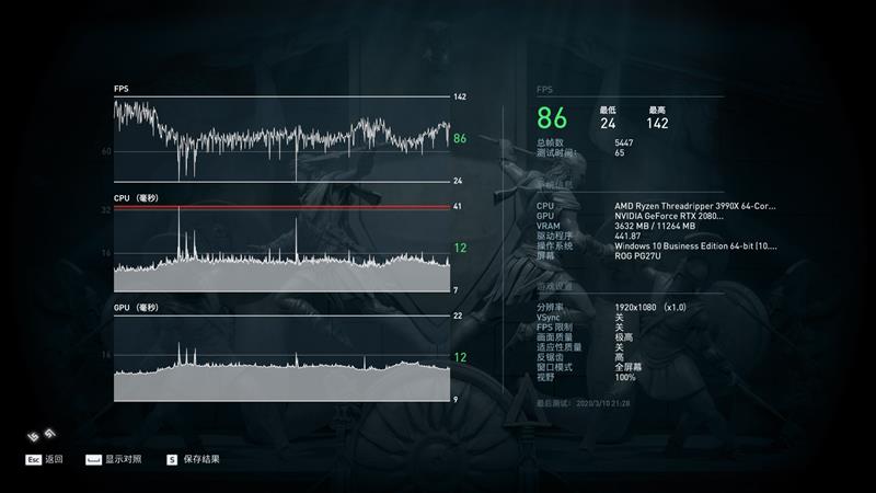 渲染:ThreadRipper 3990X渲染1439帧总共耗时34秒,渲染帧率为42FPS。