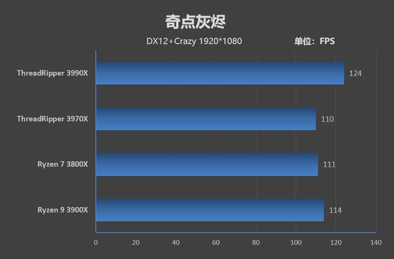 《奇点灰烬》更加出格,ThreadRipper 3990X不仅帧率更高,而且领先幅度还不止一点点,比锐龙9 3800X足足快了12%,比锐龙9 3900X也快了将近10%。