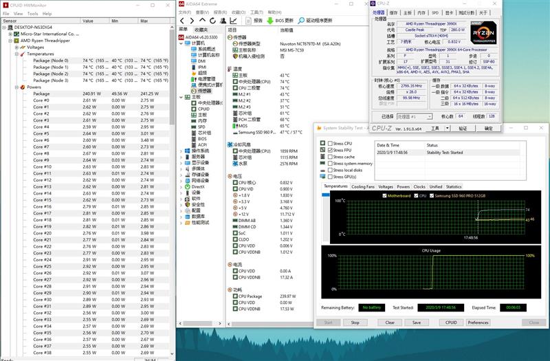 三、测试平台:16相供电微星Creator TRX40主板护驾