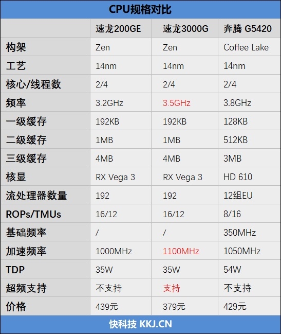 在价格方面,速龙3000G的官方报价为379元,比奔腾G5420要便宜50元,也比速龙200GE 439元的首发价格便宜了60元。