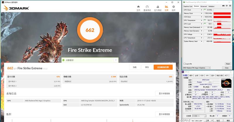 在3DMark Fire Strike Extreme测试中,速龙3000G的图形分数为676分。