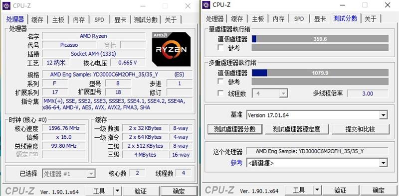 速龙3000G的单线程分数为359,多线程分数为1080。