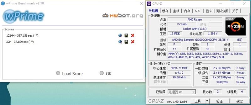 超频到4.1GHz之后,在wPrime 32M单线程测试耗时37.8秒;多线程wPrime 1024M则用掉了397秒。