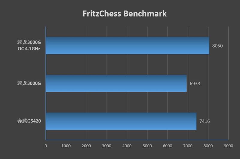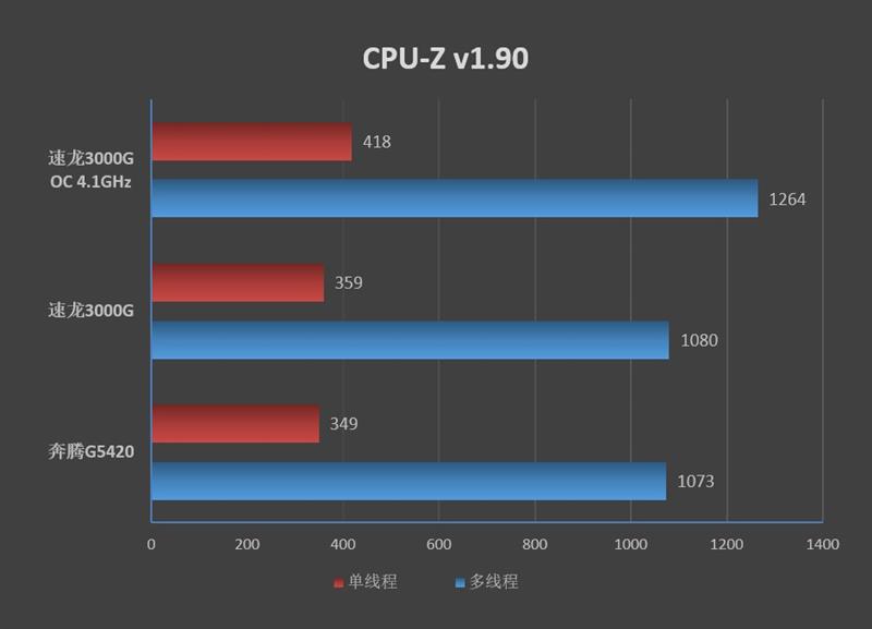 而且不要忘了,速龙3000G是可以超频的,超频到4.1GHz之后,速龙3000G的性能有了将近20%的提升,当然也要比奔腾G5420强了不少。