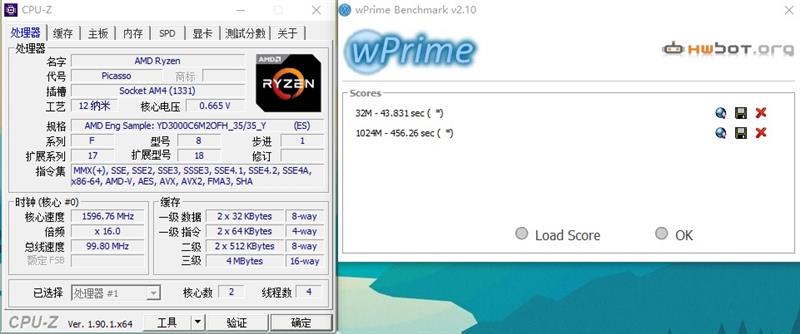 在wPrime 32M单线程性能测试中,速龙3000G耗时43.8秒;多线程跑完wPrime 1024M则用掉了456秒。