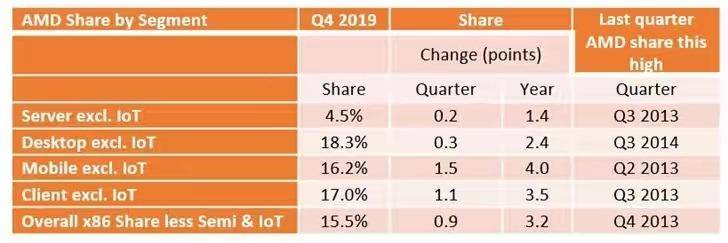 在桌面处理器与移动处理器两大市场,PC计算机的数量一直保持着较稳定的数据,而如今笔记本电脑成了许多办公人士的刚需,AMD CPU在笔记本电脑市场的投入,也使得其移动处理市场有所增加,市场份额几乎与桌面处理器比例相当。这可以作为市场布局调整的重要数据。据可靠人士透露,AMD在今年会推出Ryzen 4000 APU,预计会搭载在更多高端的设备上。