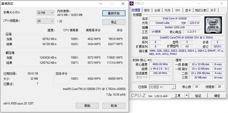 i9-10900K的多线程成绩为86895MIPS,单线程则为8303MIPS。