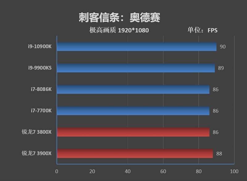 在《刺客信条:奥德赛》中,超频之后的i9-10900K帧率达到了95FPS,比默频提升了5帧。