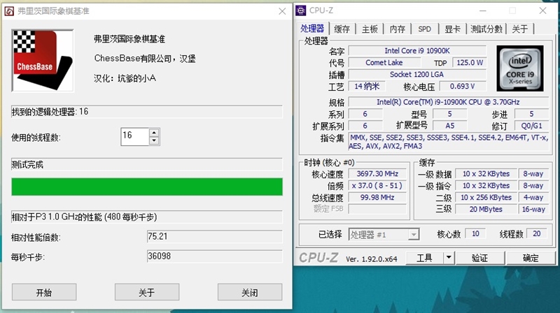 i9-10900K处理器的单线程分数为614,多线程分数为7500。