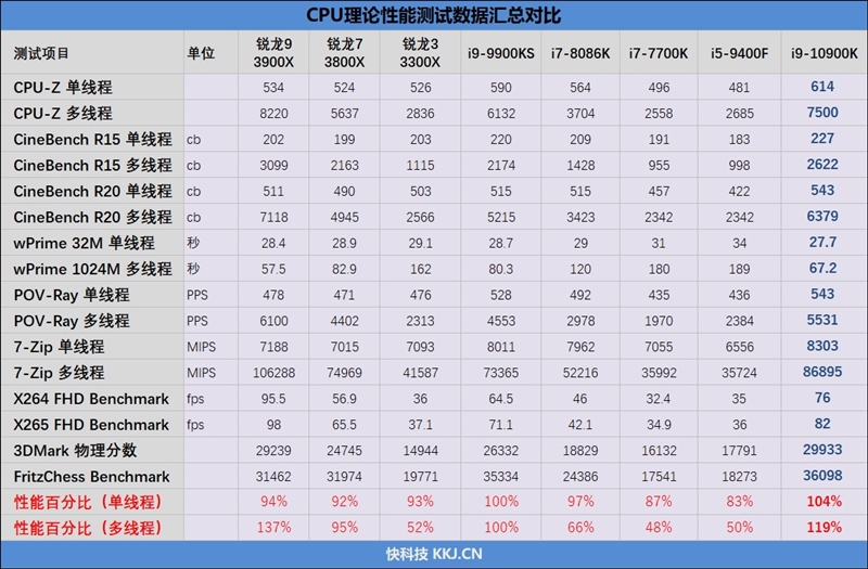 i9-10900K性能表现同样也令人惊讶!