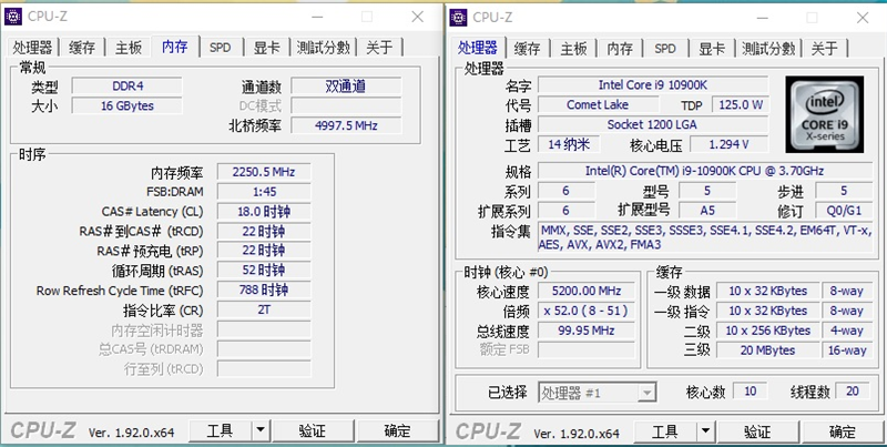 一个是i9-10900K、另外一个是i5-10600K。