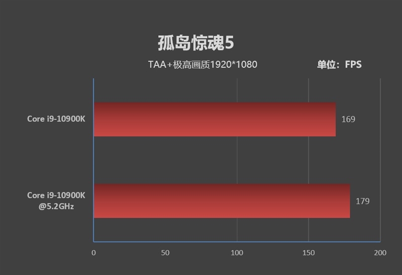 从测试结果可以看出,如果显卡不存在瓶颈的话,超频后的i9-10900K是能够跑出173FPS的恐怖帧率。