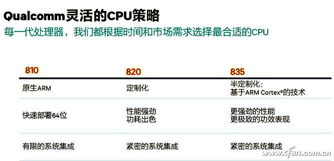 高通曾在骁龙600/800时代采用过自研的Krait架构,距离最新的骁龙820也是自研的Kyro。只是,高通发现自研架构的能耗比很难领先公版Cortex-A架构太多,不经济,所以从骁龙835开始就采取了BoC战略,也就是咱们常说的“魔改”,基于现有的公版Cortex-A架构进行版定制化。