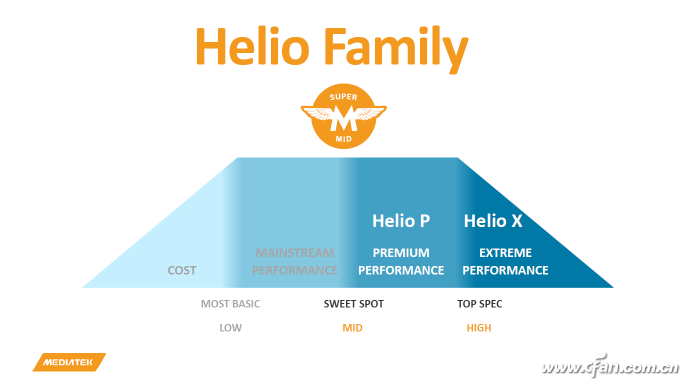 2015年,联发科推出了“曦力”(Helio)品牌,寄希望于Helio X系列可以打破高端市场的壁垒。可惜,无论是引入CorePilot异构计算技术的Helio X10,还是全球首发十核移动处理器的Helio X20都没能取得太大的成就,后者还因“一核有难,九核围观”(因温度和功耗过高而触发的降频锁核机制)成为了玩家的调侃对象。2017年,Helio X30最终成为了该家族的的“绝唱”,随后联发科公开表示将退出高端市场的争夺,全心全意应对主流市场的挑战。