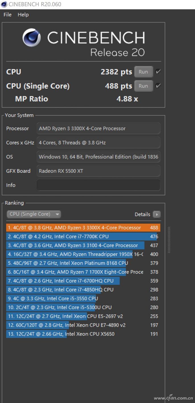 从理论测试成绩上看,借助Zen2架构的高效率,两款锐龙3的性能都相当强大,特别是单核表现相当优秀,实际计算能力分别接近和超越了曾经的旗舰产品——酷睿i7-7700K。