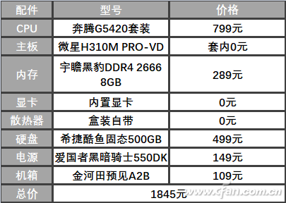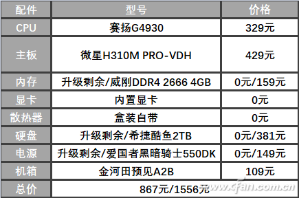 先来看一般的电脑配置,除了需要高存储性能的用户需要用B360、B365主板来搭配傲腾技术外,其他用途大家可以尽量选择最省钱的配置方案。考虑到不同的用途,小编的内存、硬盘、电源等配置都略高,如果只用于上网、文本处理这样的任务,4GB内存、240GB SSD或1TB硬盘就可以,价格可降低300元以上。