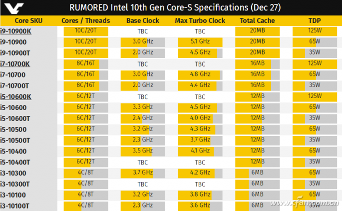 在小伙伴的憧憬中,明年的装机计划是什么样的呢?小编猜十代酷睿肯定是很多人考虑的重点吧。保密了半年的十代酷睿发布了更多信息,基本规格差不多就算揭晓了,咱们今天来看看它们到底有啥不同,值不值得等吧。
