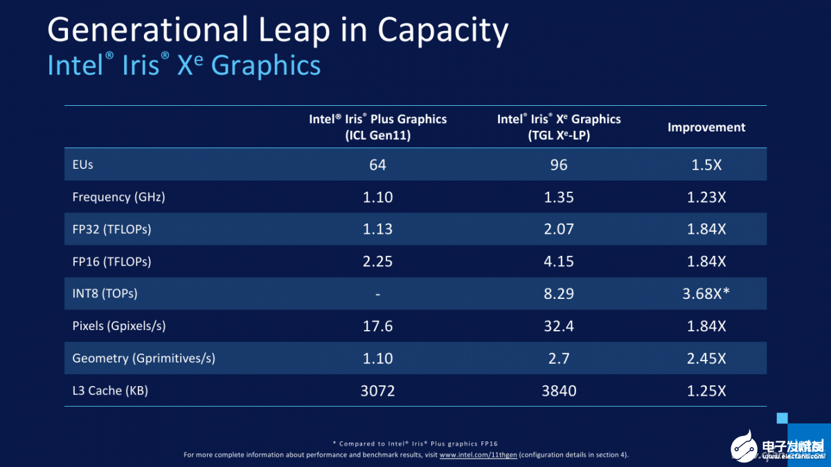 Xe LP核显不仅执行单元数量最多增加了50%,底层架构也进行了优化升级,FP16、FP32浮点性能可提升84%,还首次加入了INT8整数处理能力,性能高达8.29TOPS。同时,英特尔还彻底重写了核显的驱动程序,可以更好地发挥硬件性能潜力。