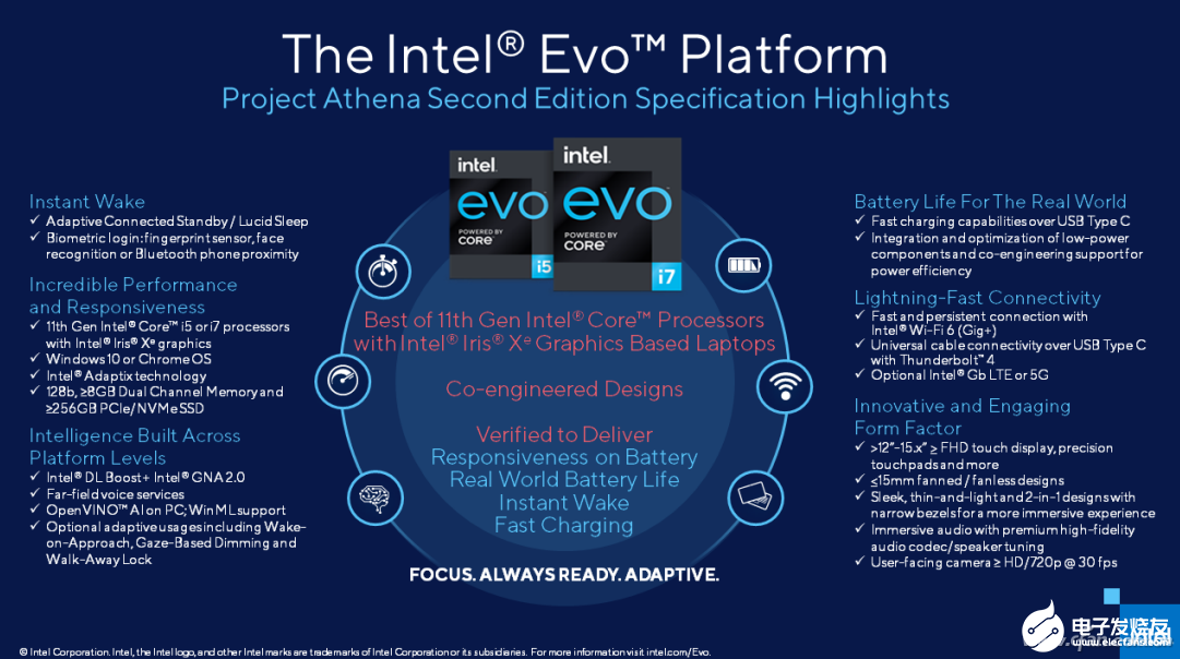 在发布第十一代酷睿之余,英特尔还宣布了2020年的“雅典娜计划”及全新的EVO认证。在未来的很长一段时期里,凡是能贴上的EVO认证标签的笔记本就都代表着高端大气上档次。
