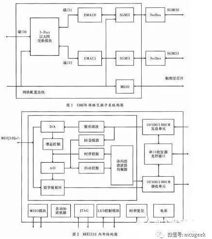 EMAC的作用是将交换子系统的内部信号转换为GMII信号传递给SGMII模块;MDIO控制物理层芯片执行对多数据流的控制输入输出。