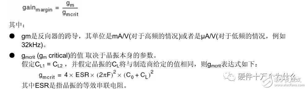 基于这一理论,反向器跨导(gm)必须满足:gm > gmcrit 。在这种情况下才满足起振的振荡条件。为保证可靠的起振,增益裕量的最小值一般设为5。