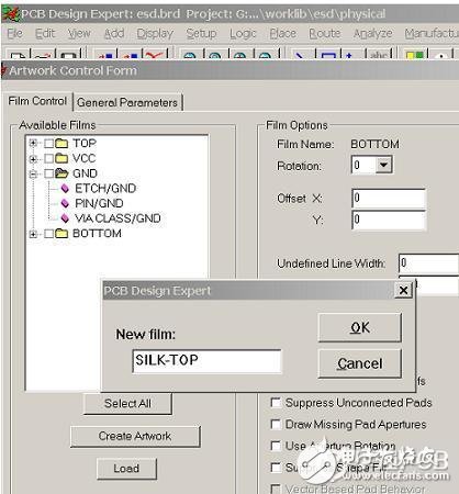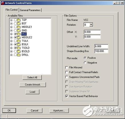 同时窗口由面的选项可根据各层具体情况选择,(如无宽度的线生成光绘时的默认宽度,是否是反片…)。如下图: