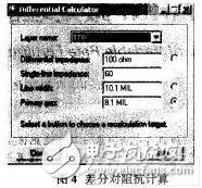 2.按照对信号TX+/-阻抗控制要求计算差分对线宽、线距,如图4所示,选择走线层面top层,填入差分对阻抗100欧,单线阻抗60欧,得到线宽10.1mil,主要线间距8.1mil。