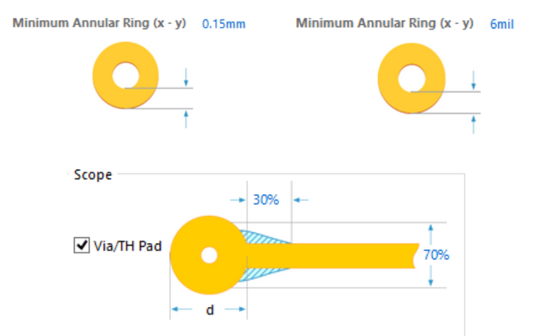 使用最小环形和采用泪滴是最大限度地提高制作产量的工具