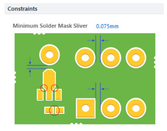 焊盘之间的最小间距应为75μm(或3mil),以确保足够的空间使焊盘完全填充