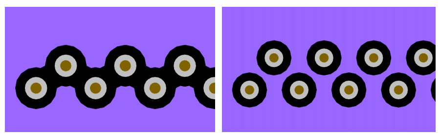 放置通孔可能导致某些区域被切割。 但是,如下所示,可以通过对通孔的放置进行小的更改来避免这种情况。