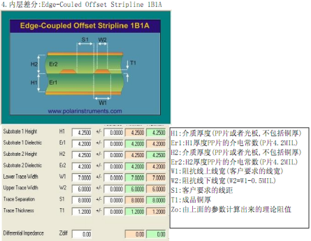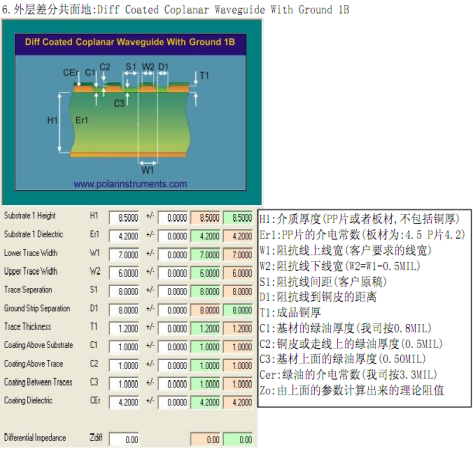差分信号微带线(带共面地线)阻抗计算示意图: