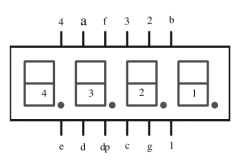 (1)1、2、3、4是“位选”针脚,用于控制具体哪一位显示。 (2)a、b、c、d、e、f、g、dp(h)是“段选”针脚,用法和1位数码管一致,用来显示具体的数值。