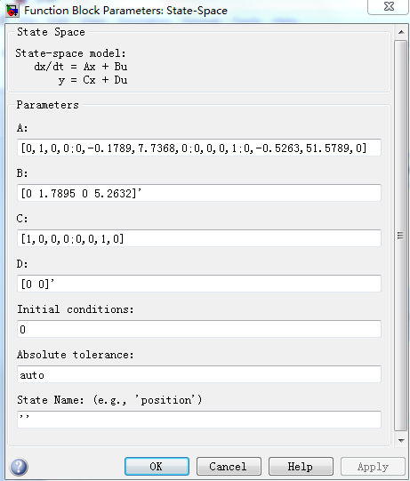 其中,状态空间模块的参数是利用上节中的计算结果,参数设置如图8所示。
