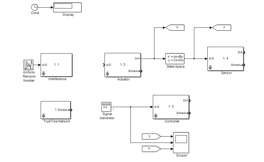 TrueTime工具箱是基于MATLAB/Simulink的仿真工具箱,是瑞典Lund学院在2002年开发的,可以实现控制系统和实时调度的仿真。