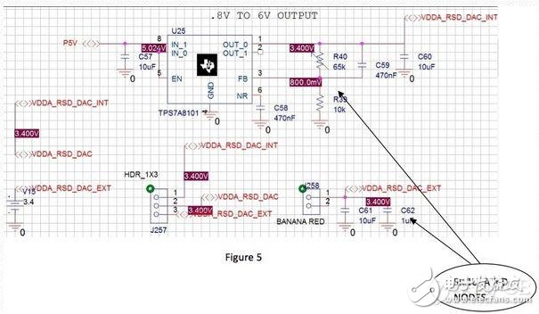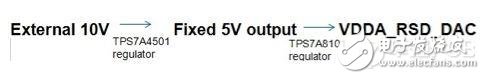待测设备在经过某些预调整后会有各种各样的信号,并且有各种模块,如稳压器、运放等,用于信号调整。考虑通过稳压器得到的一个供电信号例子: