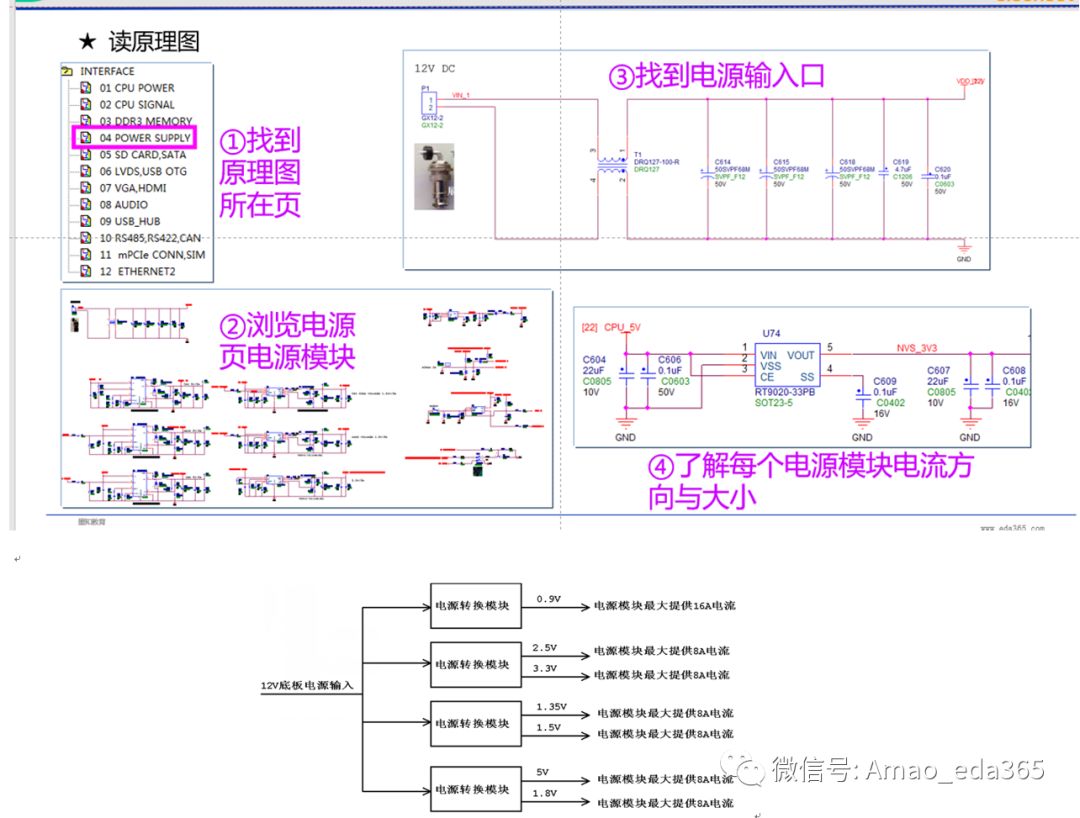 PCB进行PI仿真分板时,有个必须的步骤是把不同电压给不同元件供电时的数据整理出来,把这些元件及其对应的电压、电流快速且准确地整理出来是一个耗时、耗力及需要耐心的工作。在获得非常规范的原理图原文件前提下,根据原理图的电源结构及元件信息整理出这些数据不会很难,但一线的工程师都明白:绝大多数情况下PCB/PI工程师拿不到原理图文件,只能在PCB文件或PDF格式原理图上下功夫,再从这些“一般都不规范”的原理图中整理出各电源与元件的连接关系及对应的电压与电流值。