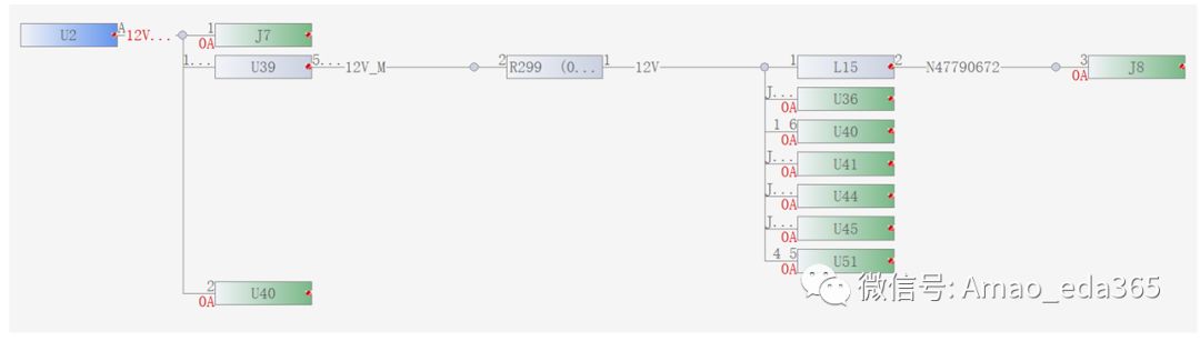 注:这里的方法基于《信号、电源完整性仿真设计与高速产品应用实例》中11章的内容,使用PowerTree提取从PCIE金手指(U2处供电)到各元件(U36、U41、U44、U51)的电源树结构。