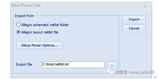 使用图8 New Power Tree界面中的Allegro layout netlist file第三方网表选项