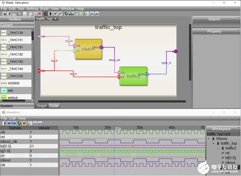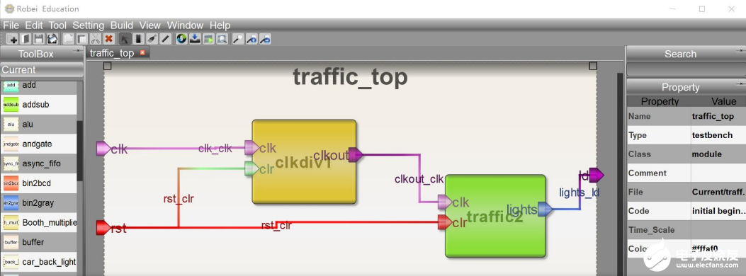 Robei不仅具备传统设计工具的代码编写、编译、仿真功能,同时还增加了可视化和模块化分层设计理念,并采用透明、开放的模型IP资源,方便工程师、学生对模块的重新利用,加快设计速度和进度。