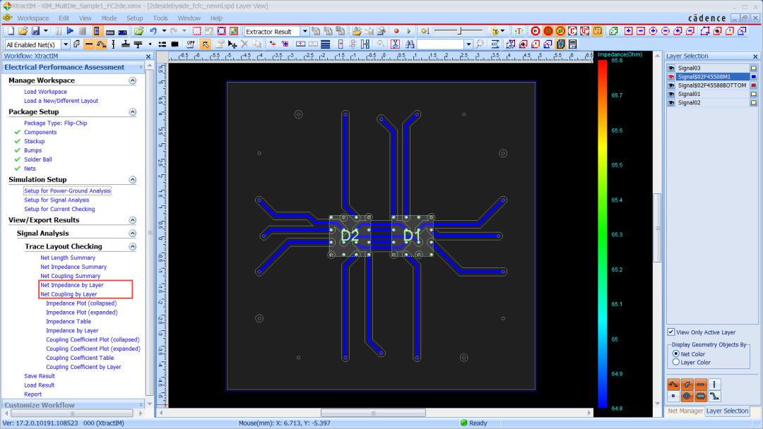 在该版本中,EPA模式中增加了一个新选项,用于显示多Die IC封装设计中所有网络的阻抗和耦合系数。