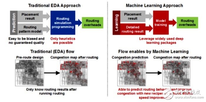 最后他展示了两个将机器学习应用于芯片设计的案例,其中之一是在芯片布线之前,运用预测线路拥挤(congestion)的模型,将芯片速度提升40MHz。另一个案例则是能产生2万个频率闸控单元(clock gating cell)的先进设计,因为规模太大,设计工程师会被迫采取全局约束(global constraint);侯永清展示了一个机器学习模型,能预测单元中的延迟并设定其个别限制。