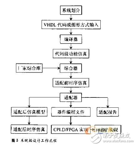 高层次设计是一种“概念驱动式”设计,设计人员无须通过门级原理图描述电路,而是 针对设计目标进行功能描述,由于摆脱了电路细节的束缚,设计人员可以把精力集中于创造性的概念构思与方案上,一旦这些概念构思以高层次描述的形式输入计算机后,EDA系统就能以规则驱动 的方式自动完成整个设计。这样,新的概念得以迅速有效的成为产品,大大缩短了产品的研制周 期。不仅如此,高层次设计只是定义系统的行为特性,可以不涉及实现工艺,在厂家综合库的支持 下,利用综合优化工具可以将高层次描述转换成针对某种工艺优化的网表,工艺转化变得轻松容 易。具体的设计流程见图3。