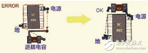 退耦电容的摆放的位置非常的重要。摆放不合理根本起不到退耦的效果。其原则是:靠近电源的管脚,并且电容的电源走线和地线所包围的面积最小。