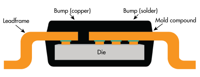 图 14: FCQFN 封装在芯片的表面采用了多排铜凸点粘接至引线框架